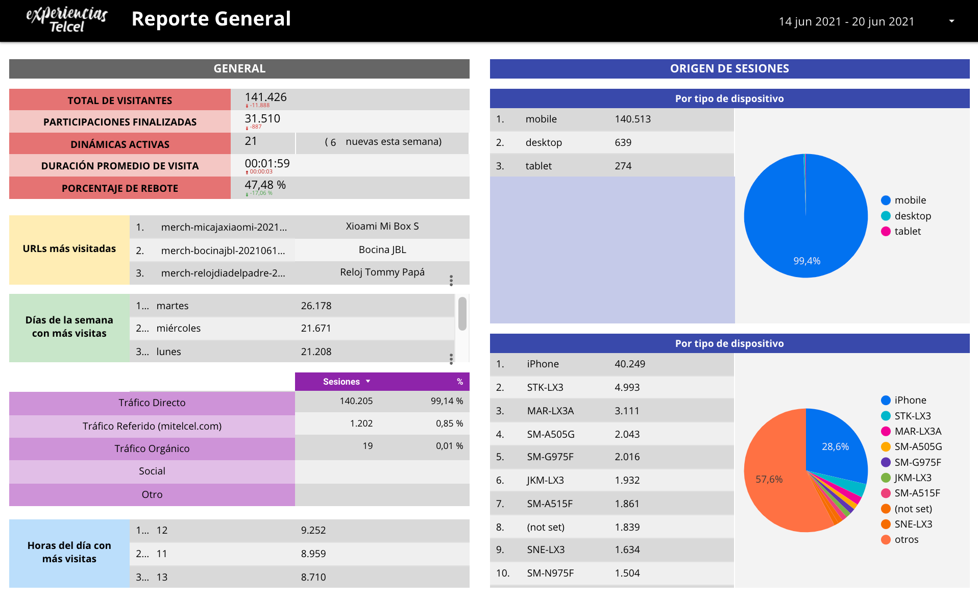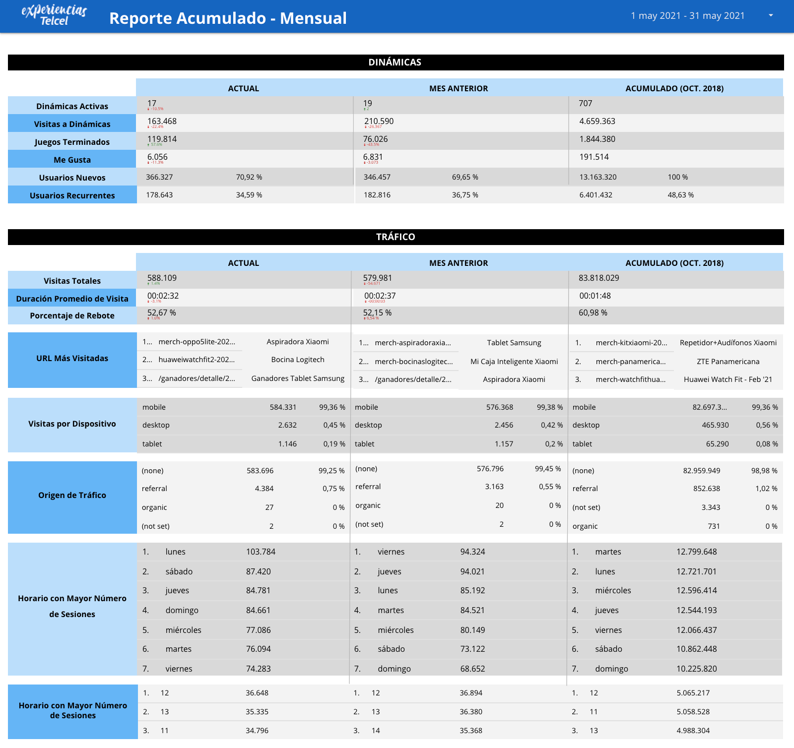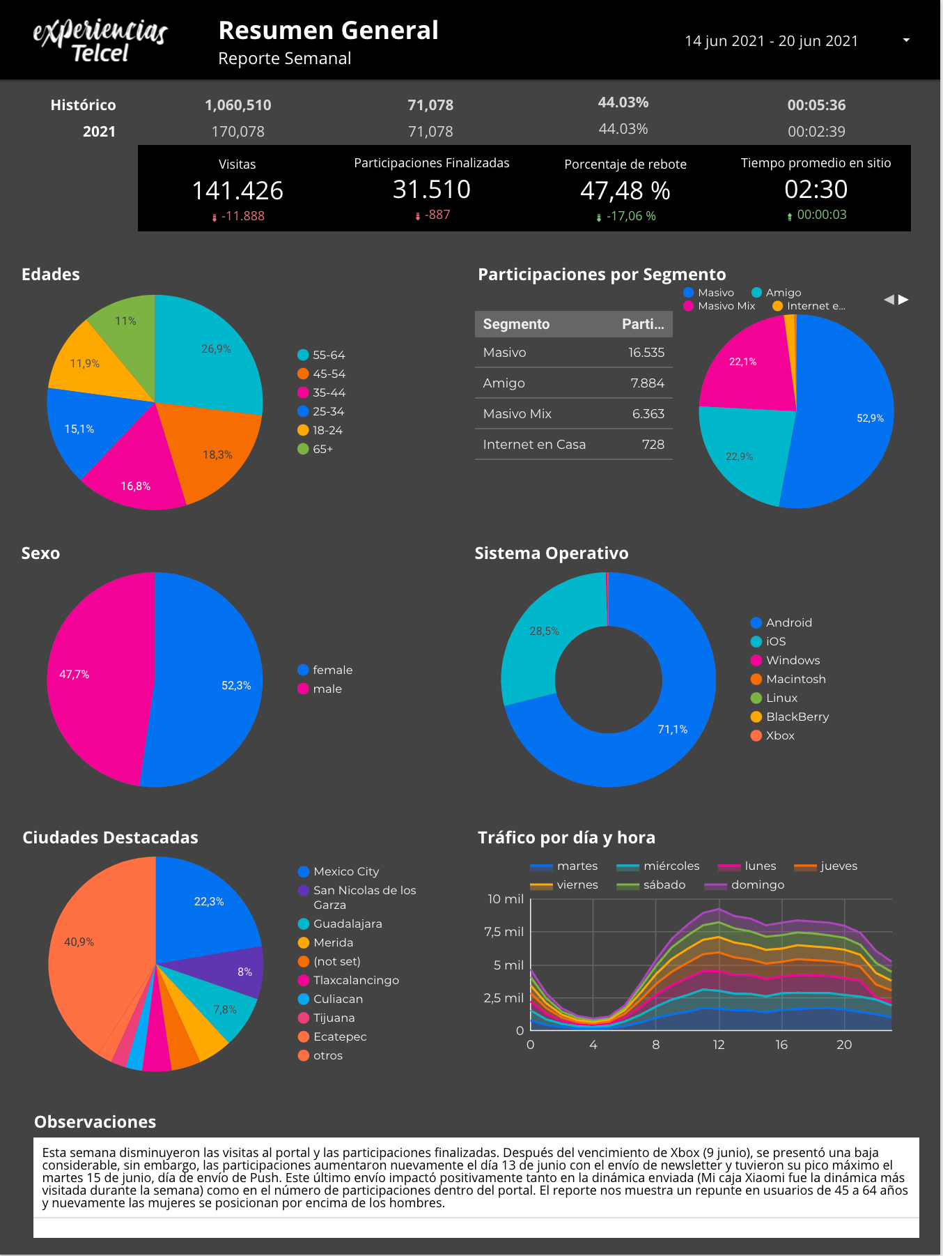 A richer analytics implementation was developed to create valuable metrics and insights that could help us take better and more accurate decisions when deciding our sponsorships, timing, trends, and user experience. Adobe Analytics (implemented by Metriplica), Google Analytics and Hotjar were used to find this insights, and Data Studio became our source of truth when it came to analysis, integrating all platforms along with custom made API's and reports.