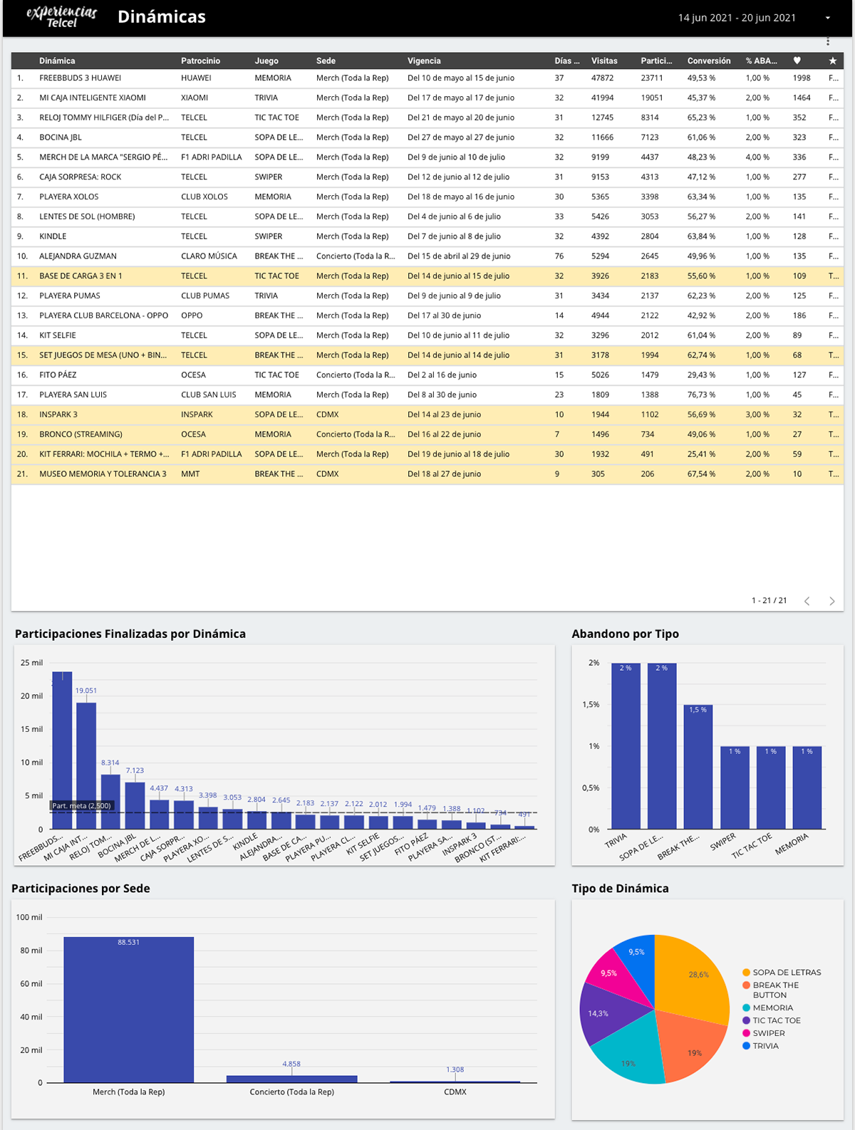 Telcel is the most important cell phone carrier in México with around 62% of market share nationwide. Experiencias Telcel is a program designed to tackle the under exploitation of sponsorships and bought marketing events. As part of the team running the website and overall strategy, the main challenge is to keep up to date and always searching for the last trend to engage with our clients.